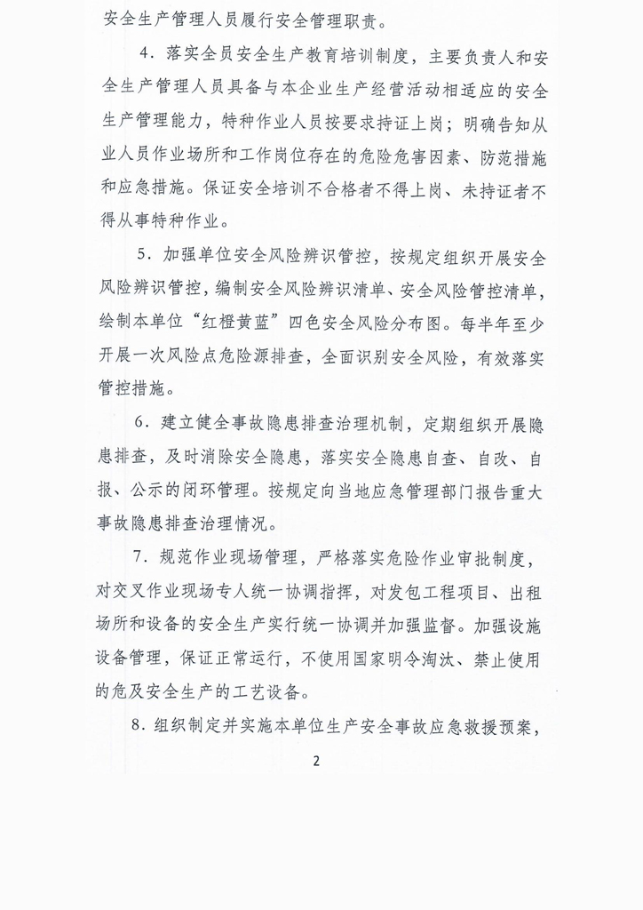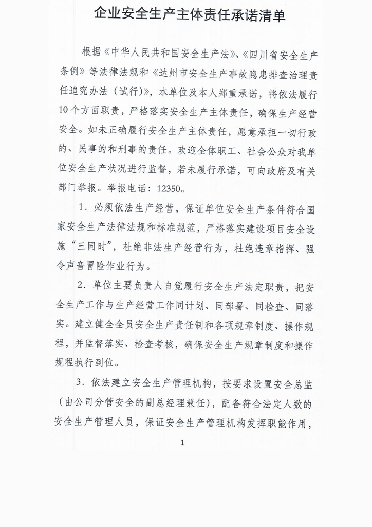 企业安全生产主体责任承诺清单